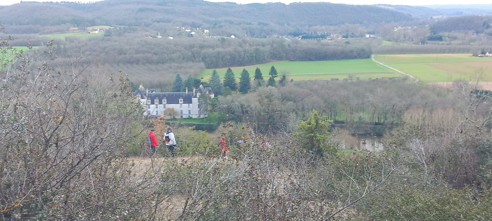 Notre guide du jour Jean-Marc nous a fait découvrir un parcours sur les coteaux dominant la Vézère, avec un vue sur la vallée et le château de Sauveboeuf.